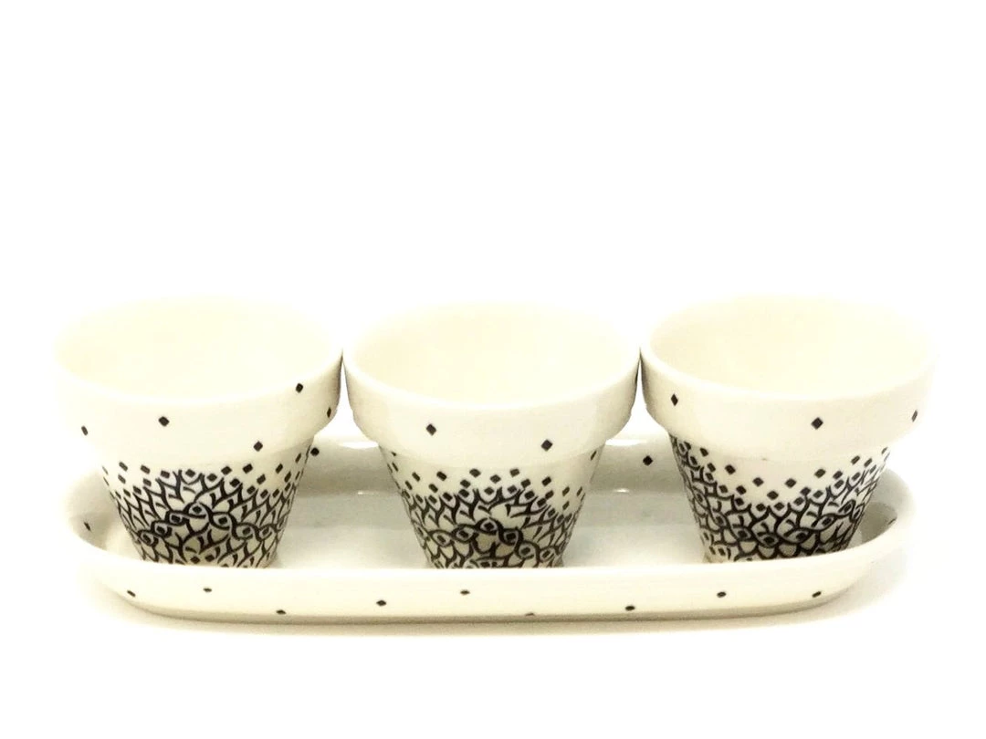 Polish Pottery 3-Flower Pot w/Tray (9011)