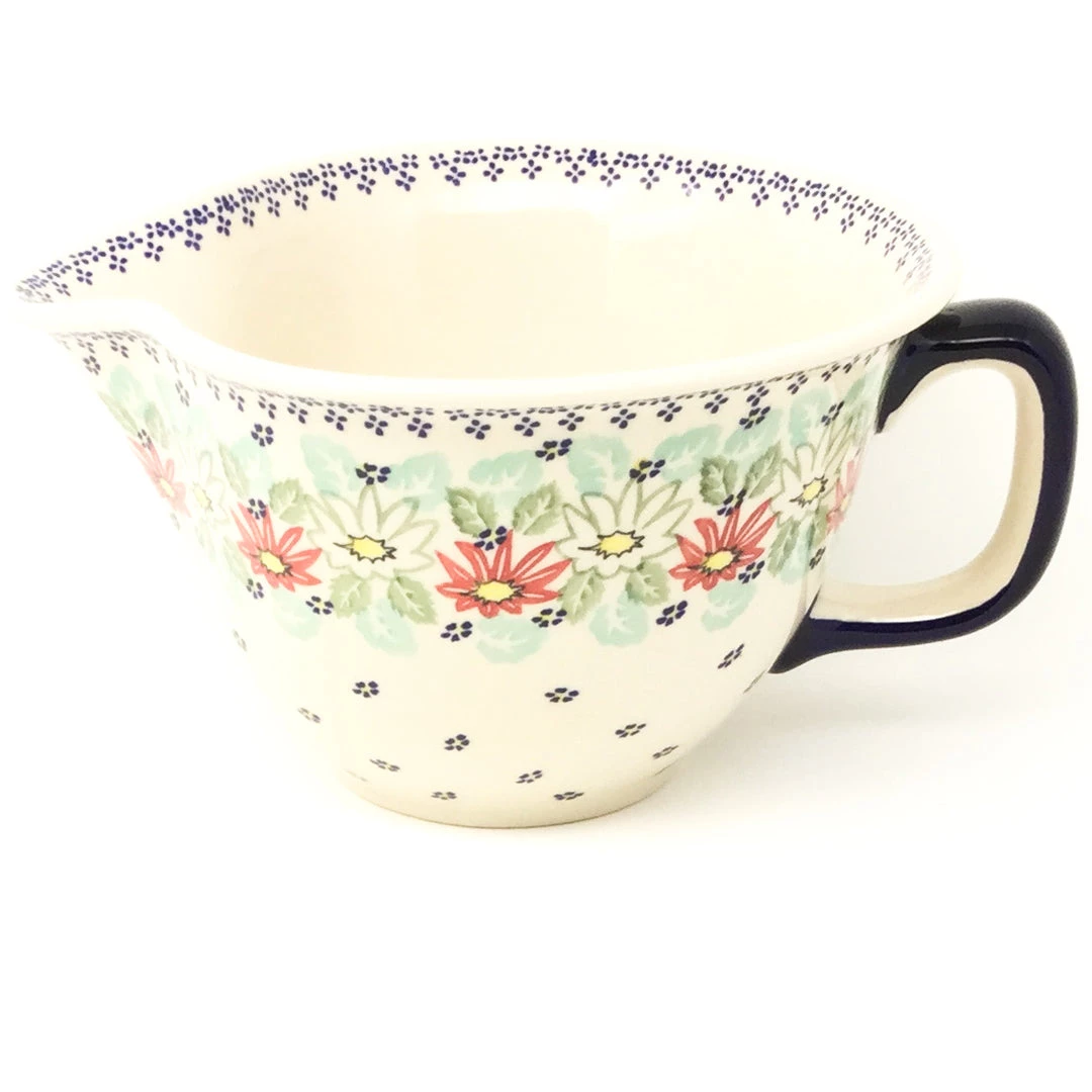 Polish Pottery Batter Bowl 64 oz (D-014) Great for mixing batters. and pouring Dimensions Volume 64 oz Features Dishwasher safe Oven safe Microwave safe Freezer safeDimensions (in inches):