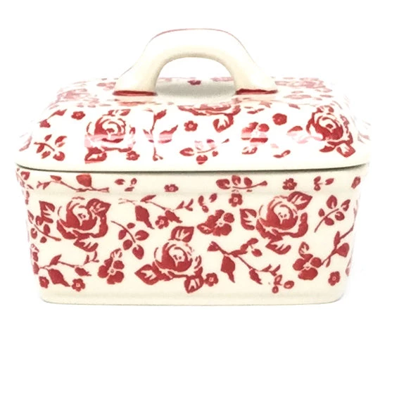 This beautiful covered butter box is the perfect size for two sticks of butter, or one solid pound of butter.
