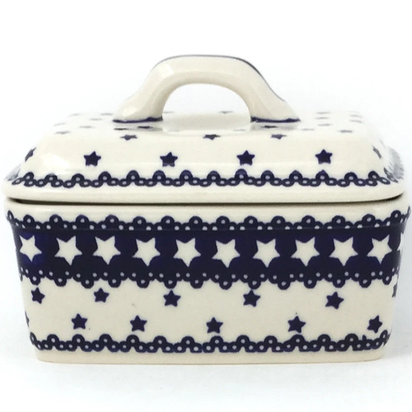 This beautiful covered butter box is the perfect size for two sticks of butter, or one solid pound of butter.
