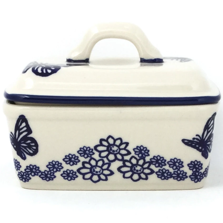 This beautiful covered butter box is the perfect size for two sticks of butter, or one solid pound of butter.