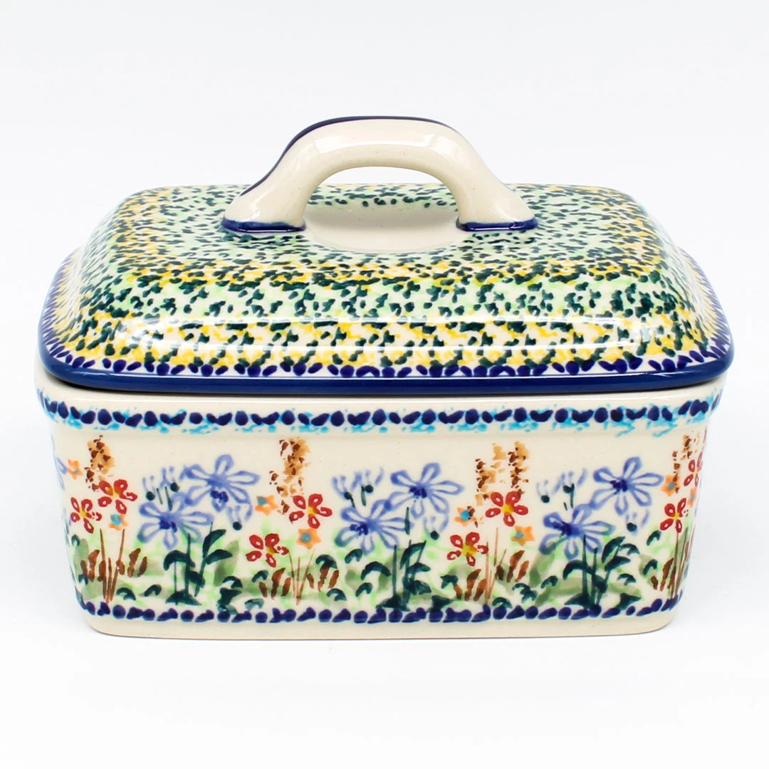 This beautiful covered butter box is the perfect size for two sticks of butter, or one solid pound of butter.