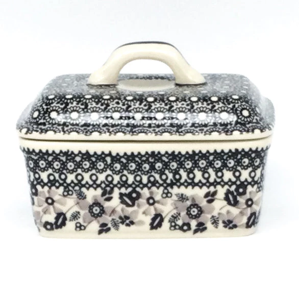 This beautiful covered butter box is the perfect size for two sticks of butter, or one solid pound of butter.