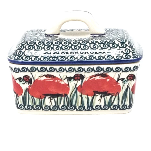 This beautiful covered butter box is the perfect size for two sticks of butter, or one solid pound of butter.