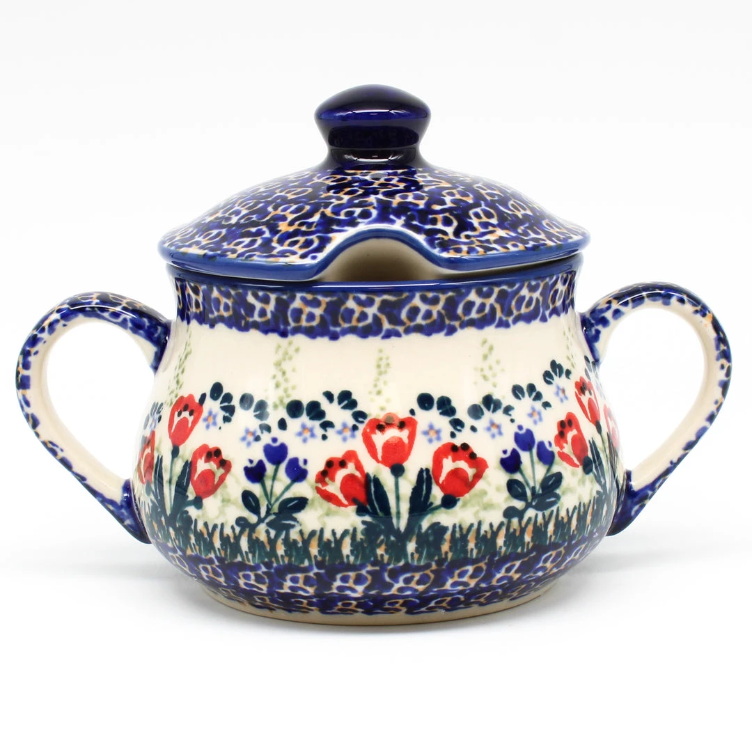 Janelle Imports Family Style Sugar Bowl 14 Oz In Red Tulips