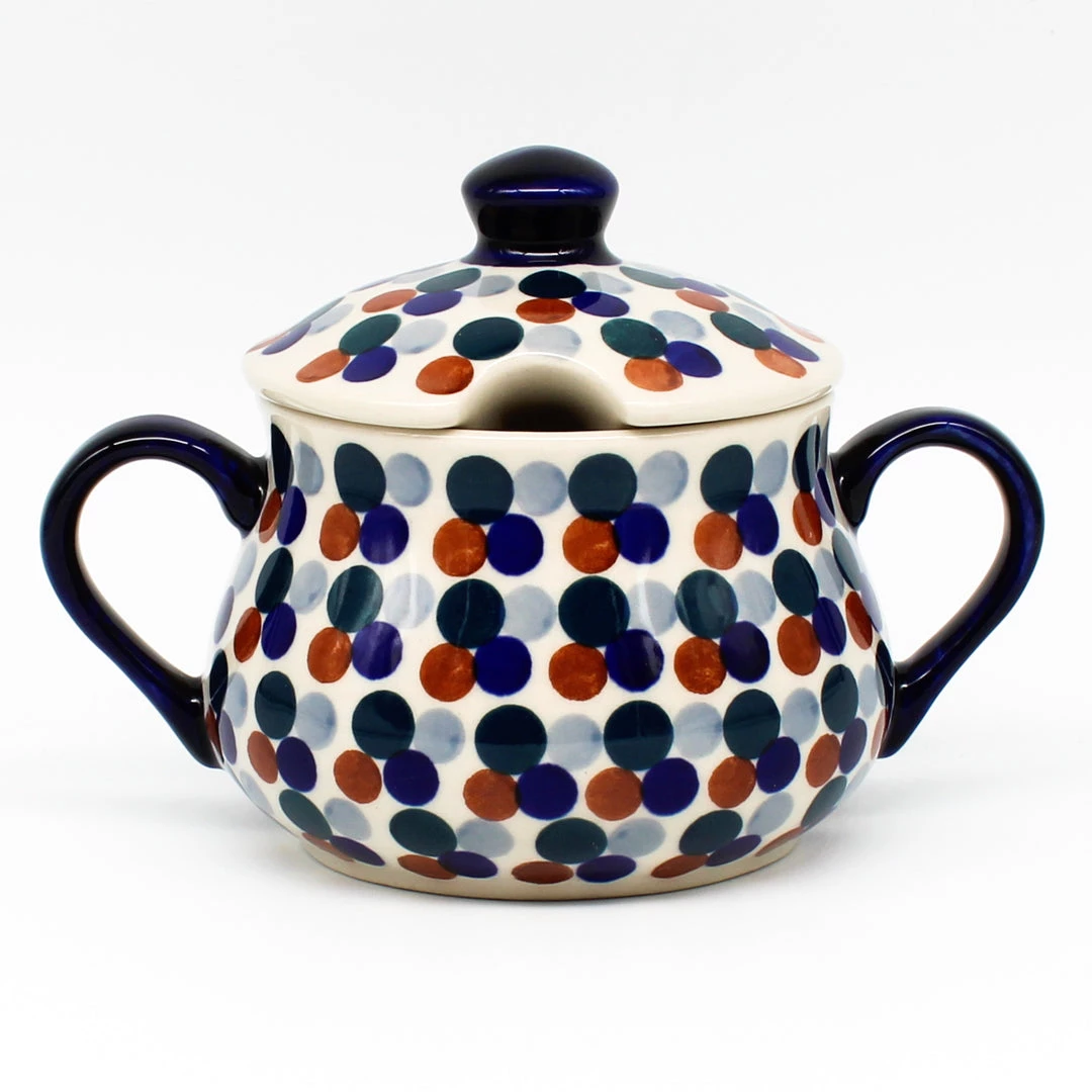 Polish Pottery Family Style Sugar Bowl 14 oz (B-003) Beautiful addition to any dinner table Dimensions Volume 14 oz Diameter 6.5 inches Hight 4.5 inches Features Dishwasher safe Oven safe Microwave safe Freezer safeDimensions (in inches):