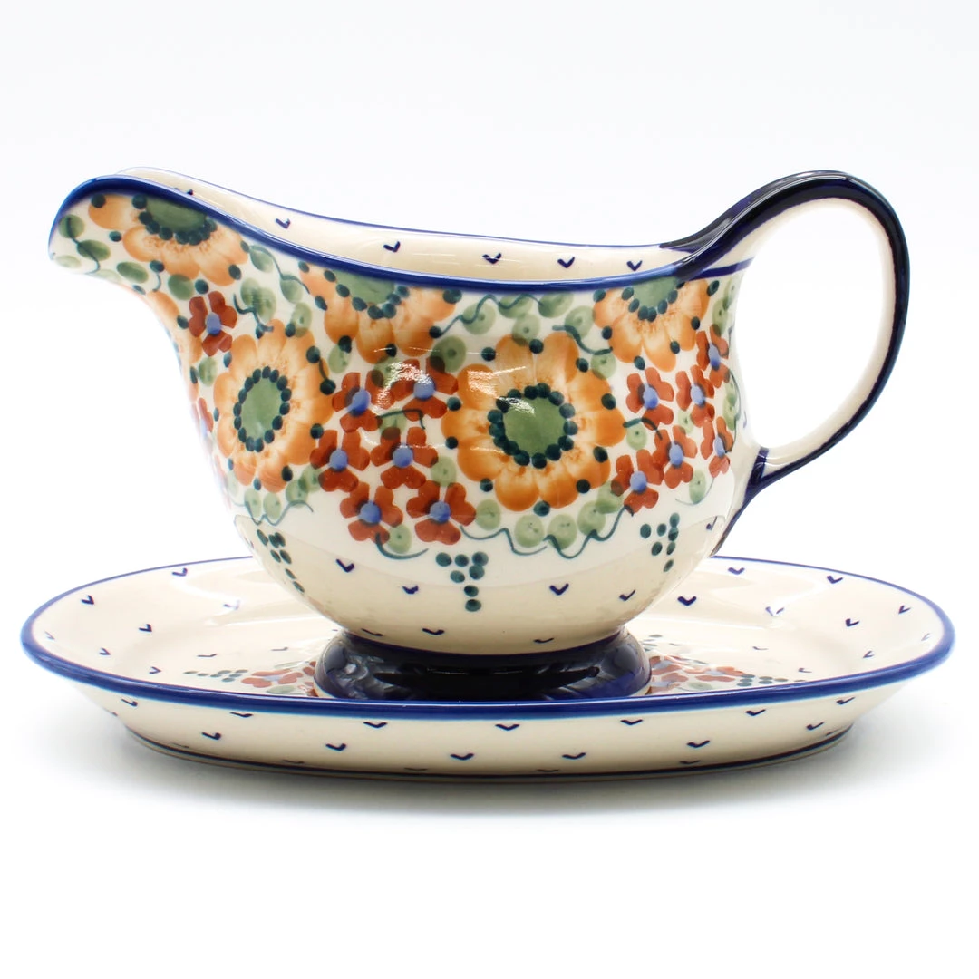 Polish Pottery Gravy Boat w/Tray 1 qt (S-107)