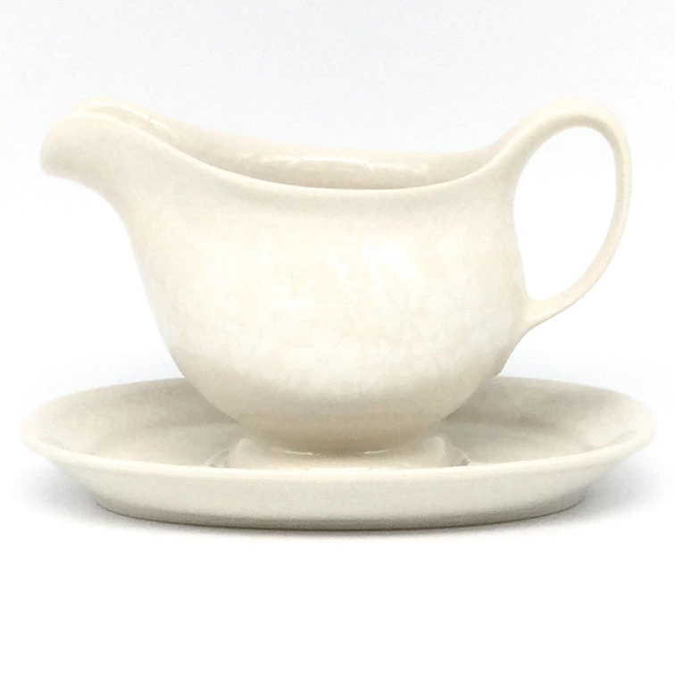 Janelle Imports Gravy Boat W/Tray 1 Qt In White On White