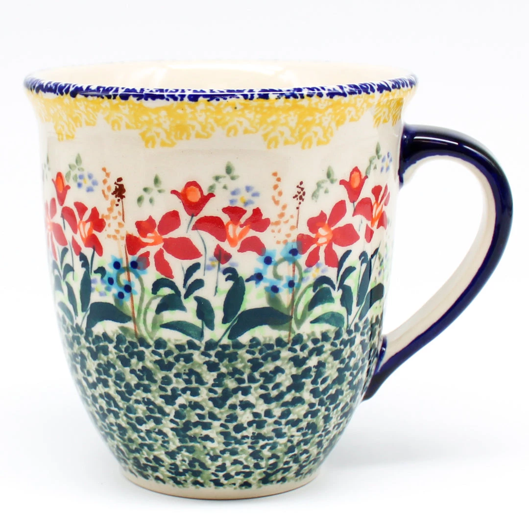 Polish Stoneware Lg Bistro Cup 16 oz (K-106) Great for coffee, tea, hot chocolate, and soup Popular seller and perfect cup to go with the round place settings This mug is perfect for everyday at home and the office! Dimensions Volume 16 oz Diameter 4 inches Hight 4.5 inches Features Dishwasher safe Oven safe Microwave safe Freezer safeDimensions (in inches):
