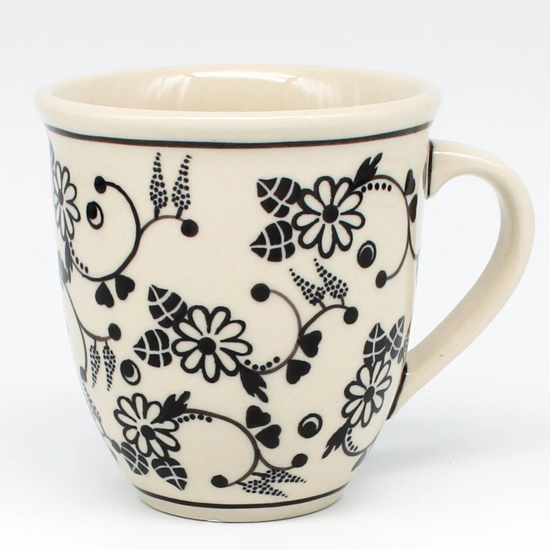 Polish Stoneware Lg Bistro Cup 16 oz (K-106) Great for coffee, tea, hot chocolate, and soup Popular seller and perfect cup to go with the round place settings This mug is perfect for everyday at home and the office! Dimensions Volume 16 oz Diameter 4 inches Hight 4.5 inches Features Dishwasher safe Oven safe Microwave safe Freezer safeDimensions (in inches):