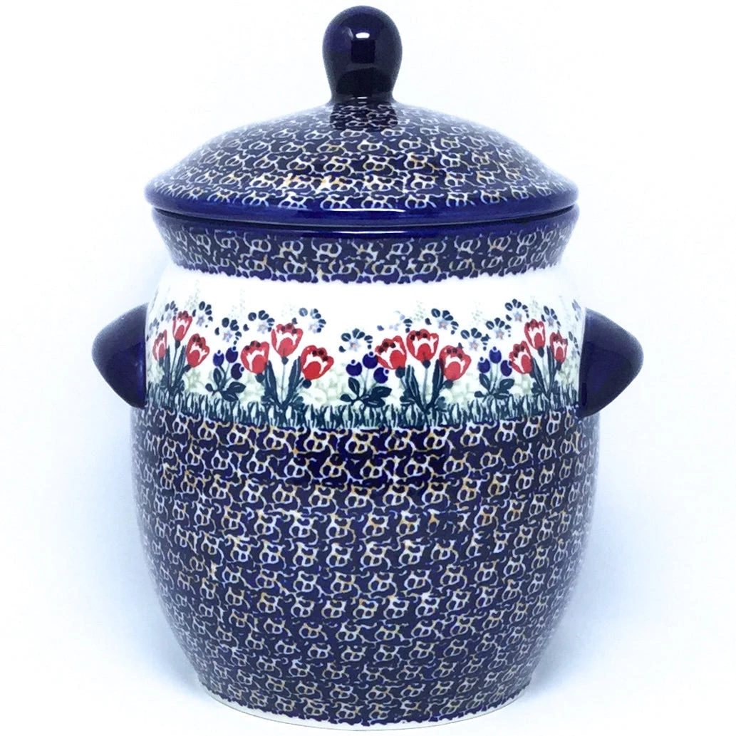 Janelle Imports Lg Canister W/Handles In Red Tulips