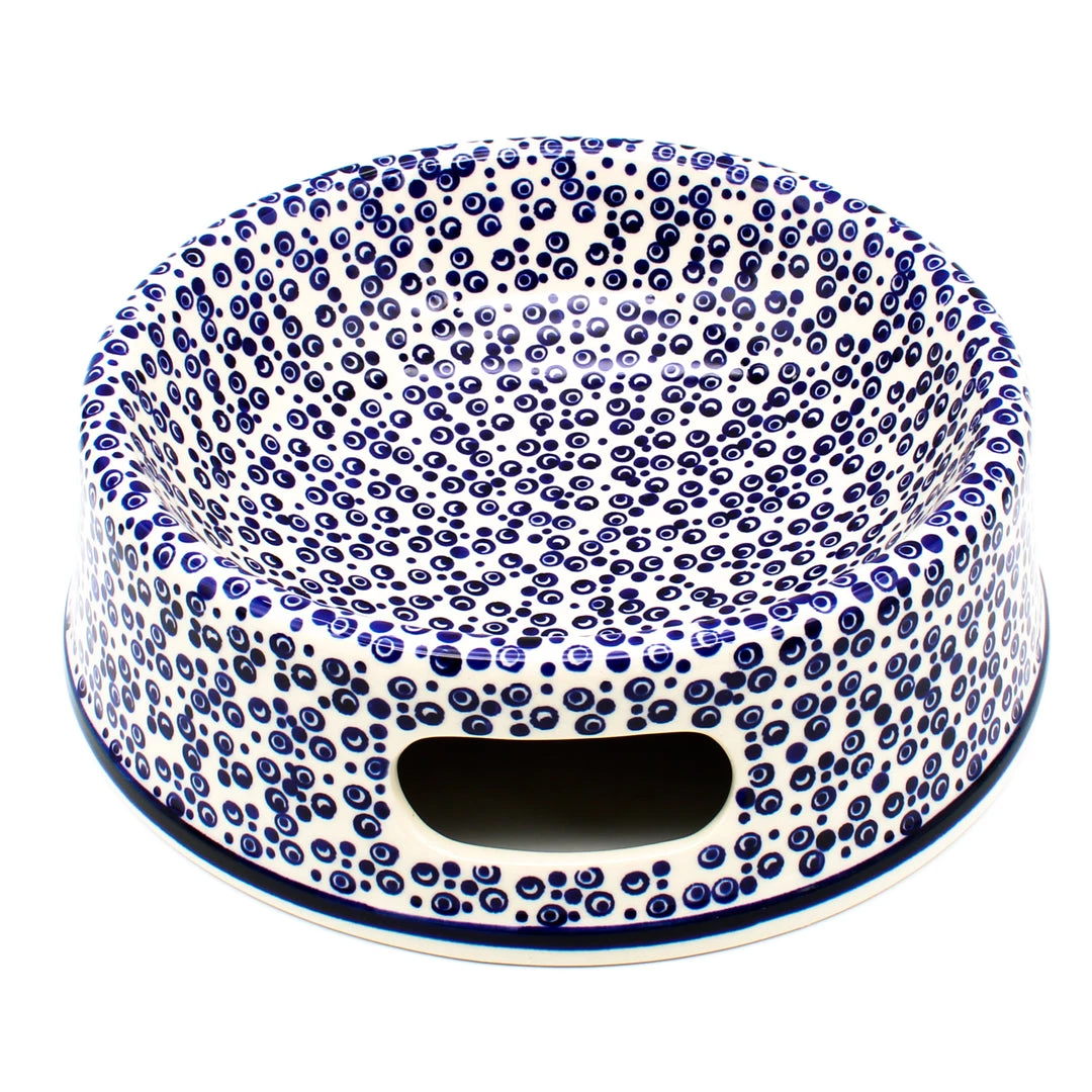 Beautiful food and water dish for large dog. Each dish has handle openings on both sides for easy pick-up. Like all of our stoneware, the large dog dish is dishwasher safe.