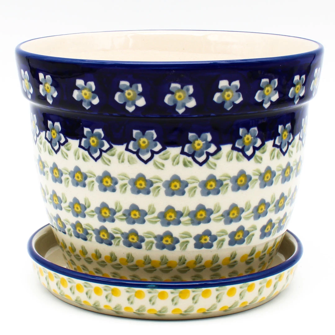 Polish Pottery Lg Flower Pot w/Plate(D-037)