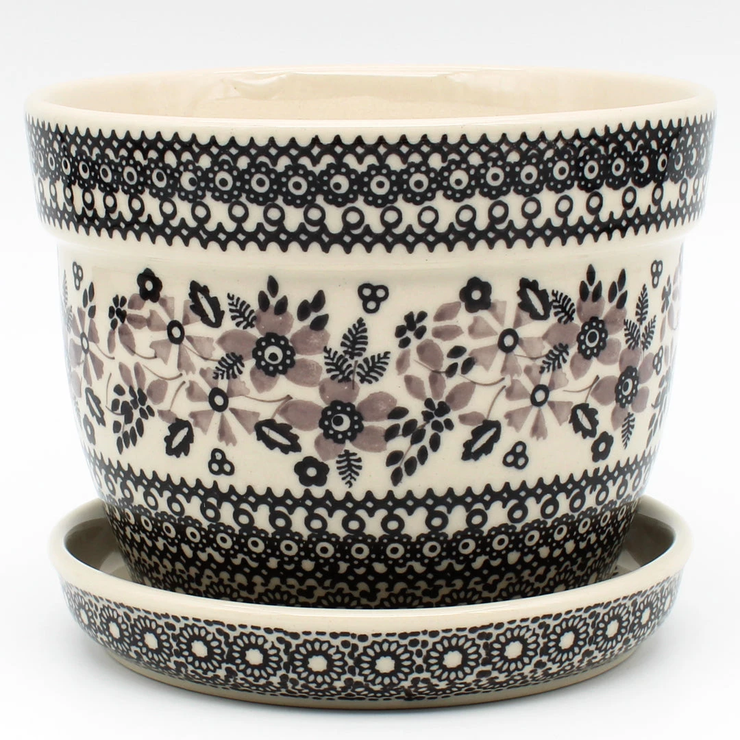 Polish Pottery Md Flower Pot w/Plate( D-036)