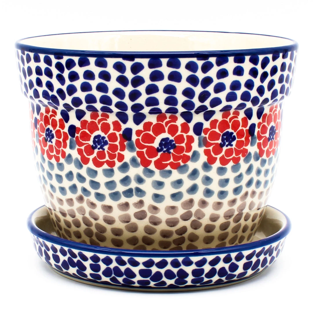 Polish Pottery Md Flower Pot w/Plate( D-036)