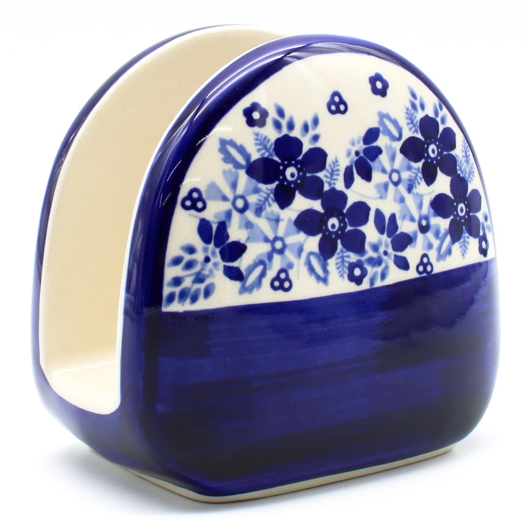 Polish Pottery Napkin Holder (S-130) Beautiful addition to table setting, or on kitchen island and countertop Dimensions Length 3 inches Width 3 inches Hight 5 inches Features Dishwasher safe Oven safe Microwave safe Freezer safeDimensions (in inches):
