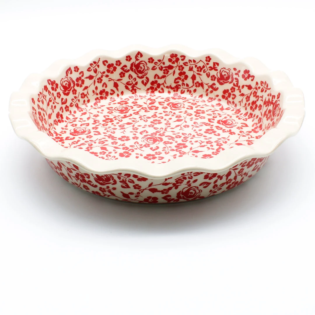Beautiful round baker with scalloped edge for pies, dips, or serving.
