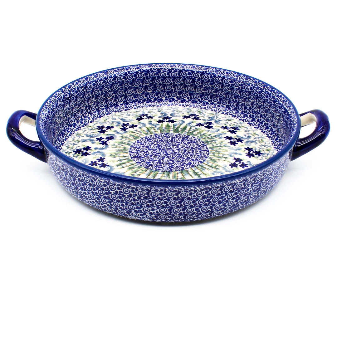 Our round baker with handles is ideal for serving hot or cold dips and appetizers. Also works great for casseroles, biscuits, rolls, and mac and cheese!