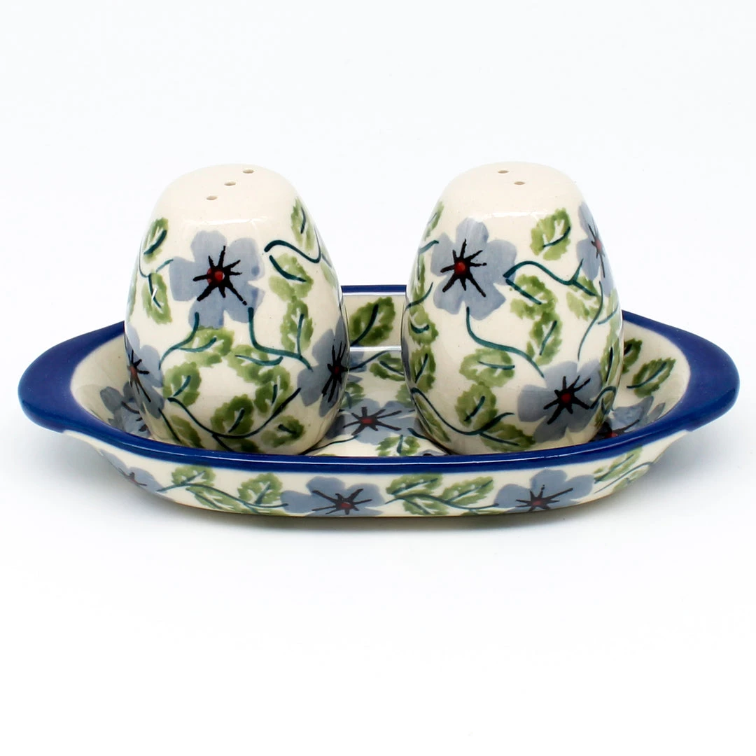 Polish Pottery Salt & Pepper Set w/Tray (S-079)