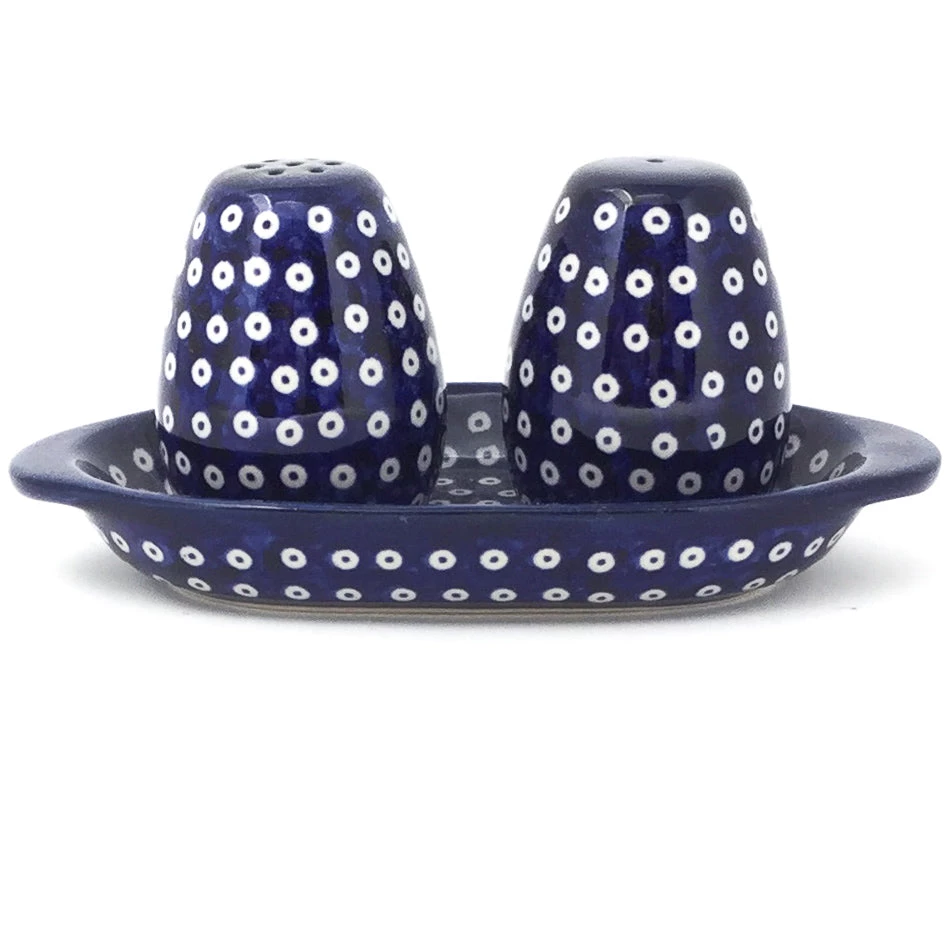 Polish Pottery Salt & Pepper Set w/Tray (S-079)