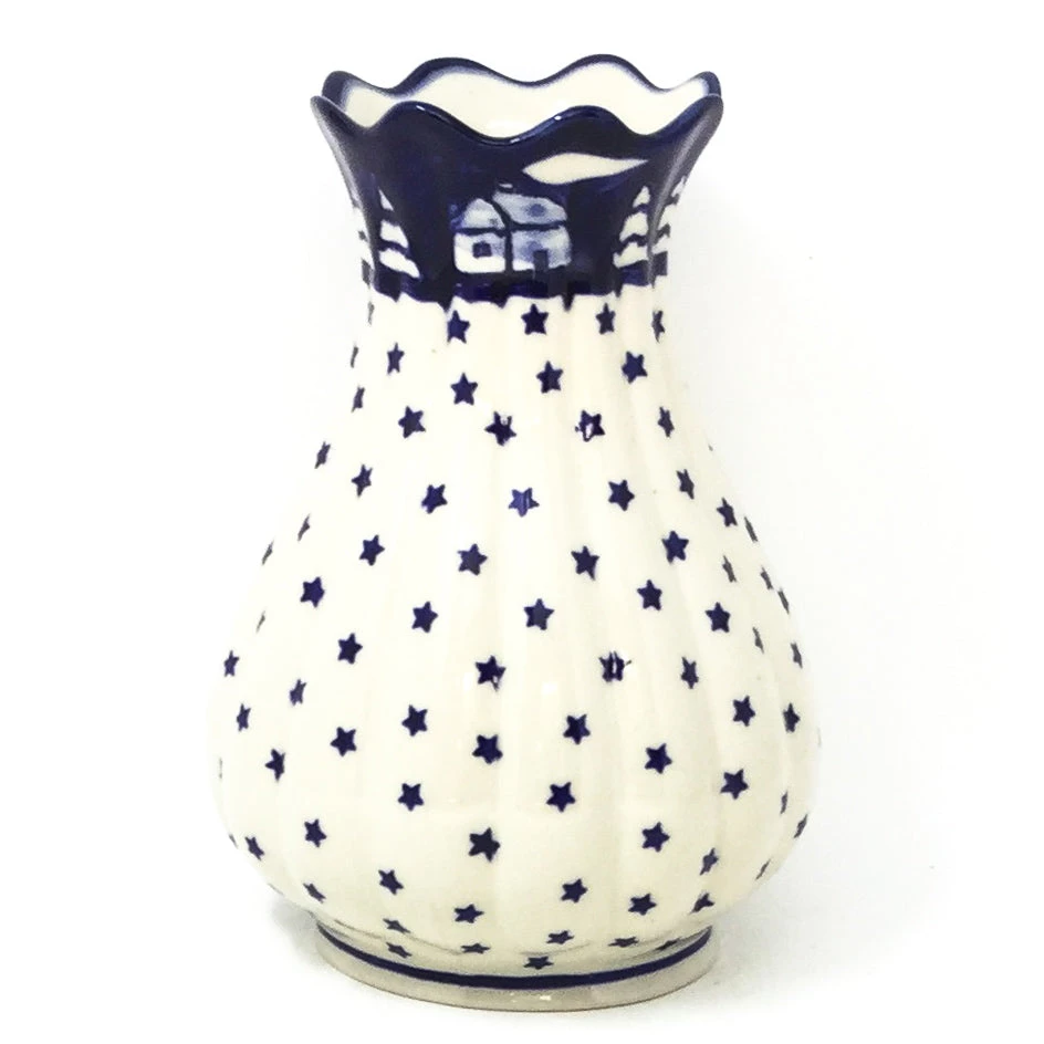 Polish Stoneware Scalloped Vase in Winter