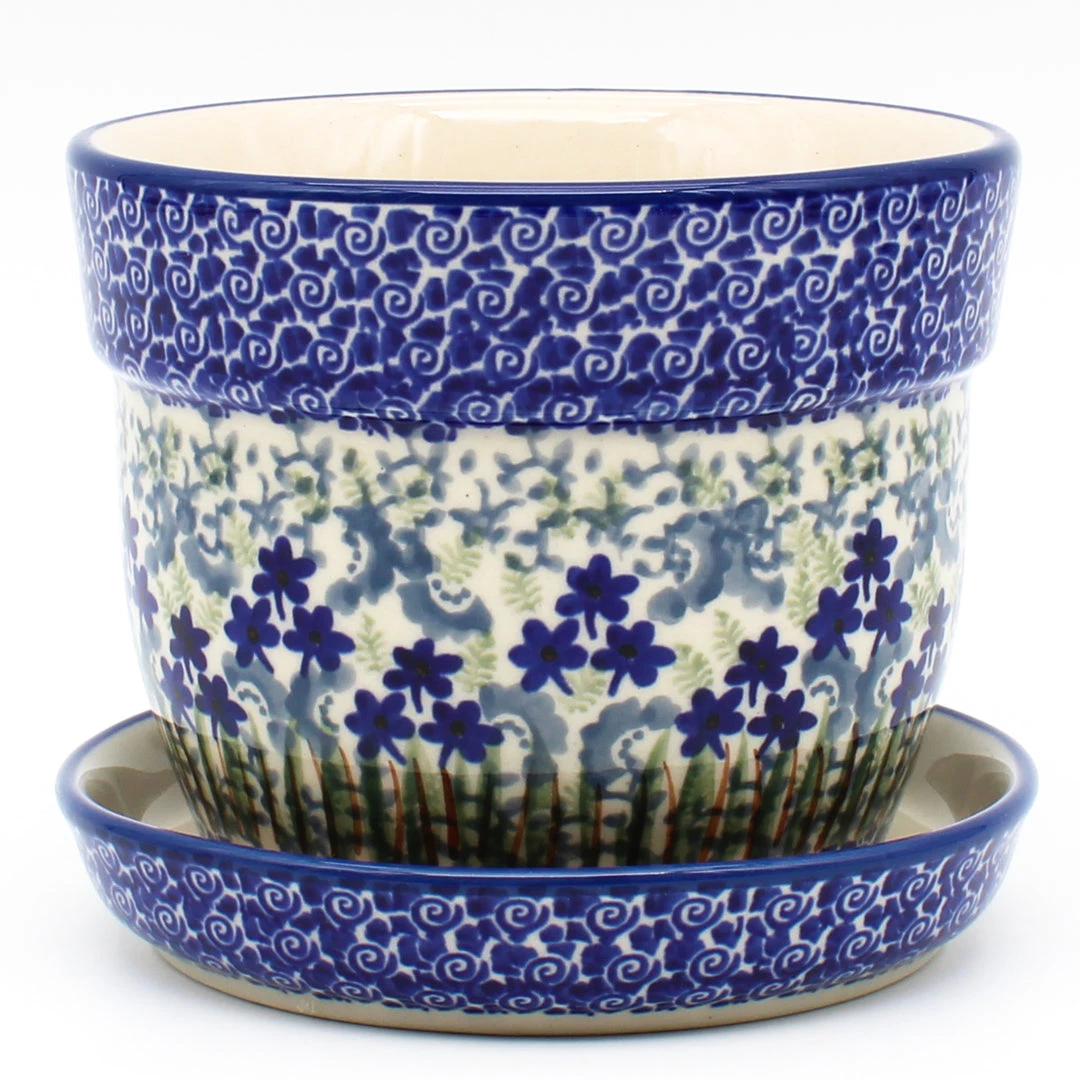 Polish Pottery Sm Flower Pot w/Plate (D-035)