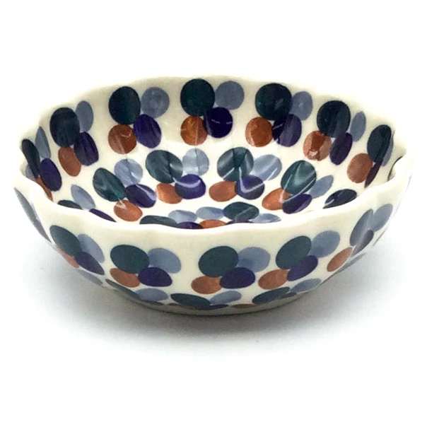 Polish Pottery Small Shell Bowl 4.5″ (M-094) Great for serving condiments, nuts and snacks Dimensions 4.5 inches wide 1.5 inches deep Features Dishwasher safe Oven safe Microwave safe Freezer safeDimensions (in inches):