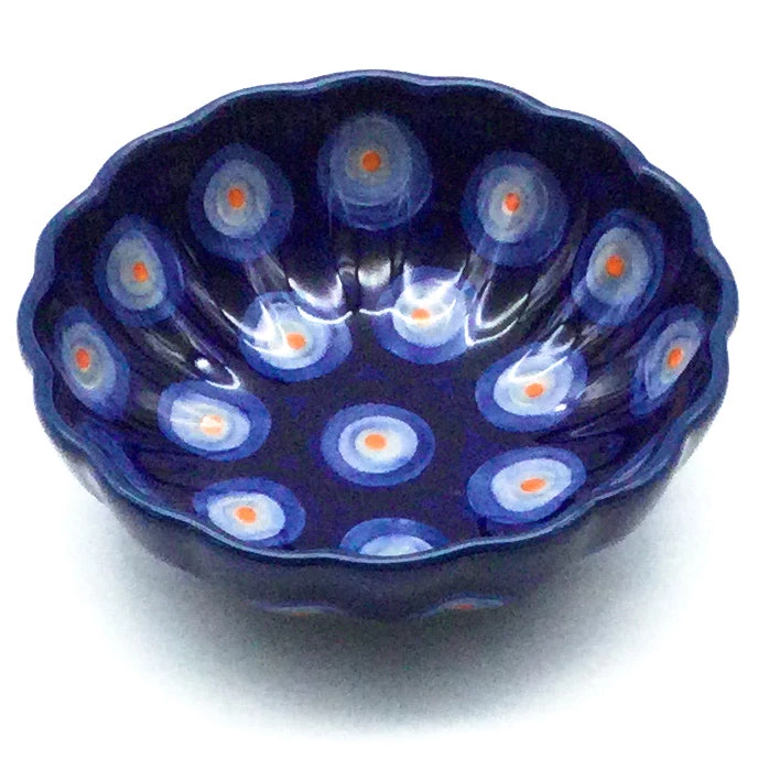 Polish Pottery Small Shell Bowl 4.5″ (M-094) Great for serving condiments, nuts and snacks Dimensions 4.5 inches wide 1.5 inches deep Features Dishwasher safe Oven safe Microwave safe Freezer safeDimensions (in inches):