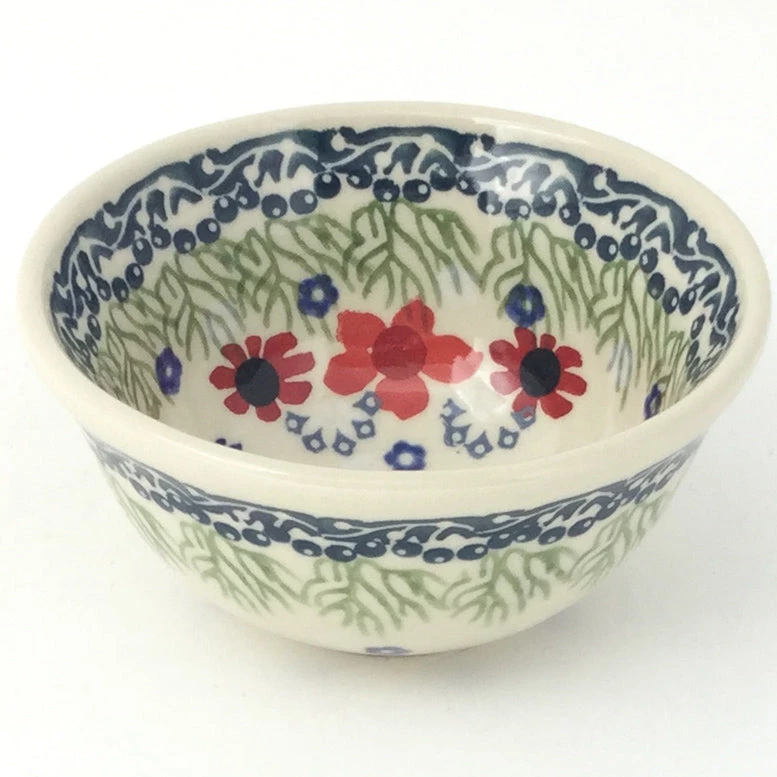 Polish Pottery Spice and Herb Bowl (M-141) Perfect for spices and condiments Dimensions Volume 8 oz Features Dishwasher safe Oven safe Microwave safe Freezer safe Dishwasher safe Oven safe Microwave safe Freezer safeDimensions (in inches):