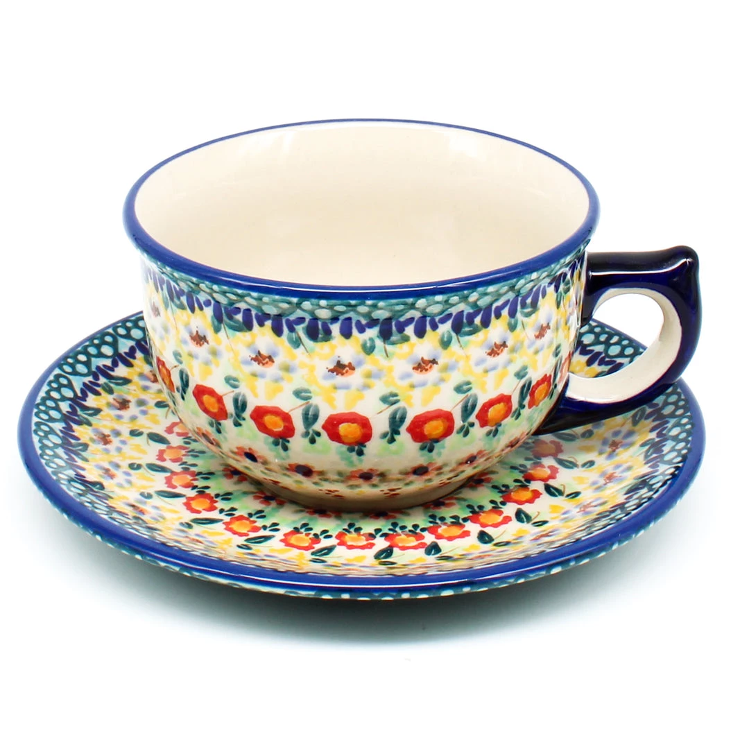 Polish Stoneware Tea Cup w/Saucer 8 oz