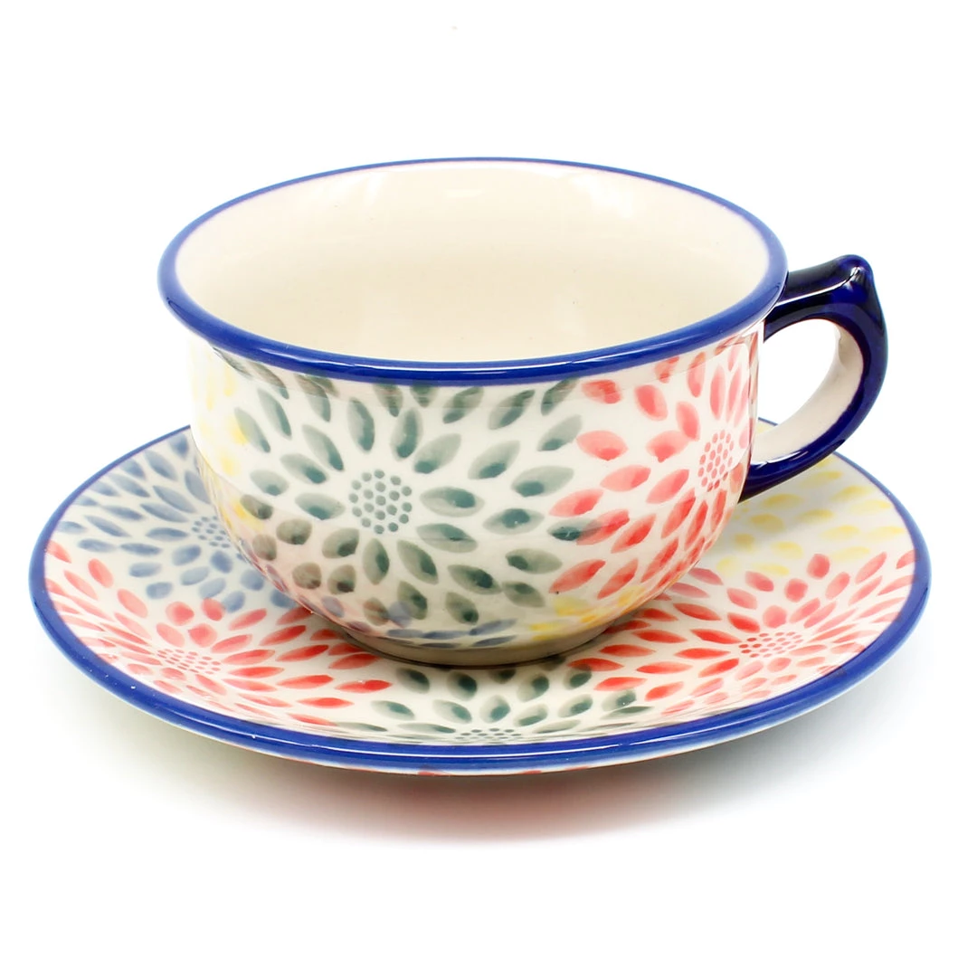 Polish Stoneware Tea Cup w/Saucer 8 oz